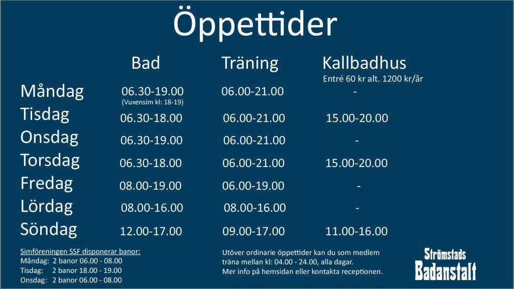 Ring oss på 0526-19600 eller mejla : info@stromstad-bad.se